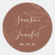 Moda Terracotta con hojas Pegatina Boda. Personalízalo con la fecha y el nombre de la novia y del novio.