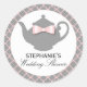 Un hermoso diseño de té con ducha de boda en gris moda, rosa y blanco hace pegatinas estupendos para un Fiesta de té con ducha de novia. La silueta de una tetera adornada con una proa rosa, caprichosa pero elegante, hace de este pegatina un encantador recordatorio del delicioso fiesta de té que se llevaba a cabo para la futura novia. Disponible en diversos colores.