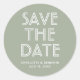 La boda verde sabio moderna salva al pegatina de cita/sello para sobres. Edite fácilmente en línea con los detalles de su boda.
