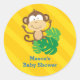 Pegatina de ducha de bebé personalizado con un mono gracioso en la jungla con fondo de banda amarilla. Diseño divertido y estilizado para niños. Regalo monogramado por personalizado. Para no tener personalización, elimine el texto de ejemplo y deje en blanco.