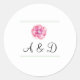 Redonda Monograma de flor rosa Boda Pegatina redondo clási
