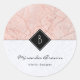 Redonda Monograma Elegante Rosa Pegatina de Mármol Gris Or