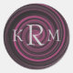 Elegantes iniciales monogramadas en un pegatina o etiqueta de diseño de ciruela y giratoria negra. Reemplace sus iniciales en la plantilla. Haga clic en el Personalizar para agregar cualquier texto que desee personalizar este elemento. ¡Buena idea de regalo! Por favor visite los Monogramas de Smilin' Eyes para ver más tarjetas y regalos con flores, naturaleza y arte digital monogramados.