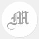 Redonda Monograma M PLATA y BLANCO Pegatina - Boda Texto