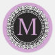 Redonda Monograma púrpura M Fleur de lis Pegatina Boda