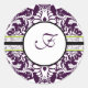 Redonda Morado Damasco Letra inicial Pegatina F Boda