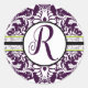 Redonda Morado Damasco Pegatina inicial Letra Q Boda