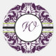 Redonda Morado Damasco Pegatina inicial Letra W Boda