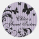 Redonda Morado y mariposa negra dulce 16 Pegatina