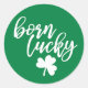 Redonda Nacido con suerte con Shamrock - Pegatina verde
