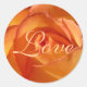 Pegatina de amor hecho con un hermoso rosa naranja con la luz del sol brillando a través de sus pétalos.