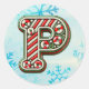 Redonda Navidades de Candy Cane Pegatina "P", franjas fest