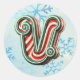 Redonda Navidades de Candy Cane Pegatina "V", franjas fest