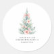 Vestir favores de partido con estos pegatinas personalizados a juego. Diseñadas con las mismas acuarelas del árbol de Navidad y los acentos florales rosados que la invitación, son una manera versátil y elegante de dar vida a tu tema de la ducha de bebé de invierno.