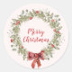 Este Pegatina navideño de Feliz presenta una gran corona acuarela pintada a mano con bayas rojas y una gran cinta roja. Celebra la época más hermosa del año y decora tus regalos con esta bonita pegatina clásica de Navidad!