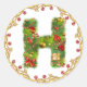 navidades pegatina inicial de monograma H. Esta exquisita carta H xmas pegatina le dará a su Navidad un toque tradicional con un moderno toque personalizado. Diseñada para parecerse a un árbol de abeto cubierto de regalos y regalos, esta letra a sobre un pegatina circular está rodeada por un marco dorado con bayas rojas. Este hotel de alta gama es un lujo asequible para su decoración de vacaciones. Con esta imagen verde y roja sobre un fondo blanco nevado, estarás obligado a causar un impacto. También es bueno para los negocios. Alfabeto completo disponible.
