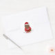 Pegatinas de Navidad con el ilustracion de un lindo sonriente niño afroamericano con el pelo negro corto, el niño está usando un disfraz de Papá Noel con un gorra rojo y sosteniendo un regalo; en un círculo rojo con fondo blanco, un Navidad diseño de vacaciones con una plantilla de texto editable para tu nombre o mensaje