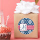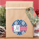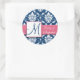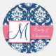 Redonda Navy Blue Damask Wedding Favor Pegatina Rosa