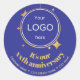 Un pegatina de aniversario azul adornado con el logo de la empresa / empresa sobre fondo negro, creando un elemento de decoración festiva para posts o regalos. Para cualquier jubileo/aniversario de empresas o pequeñas empresas. Se puede añadir dirección de personalizable o saludo personal.