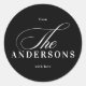 Blanco y negro. Se trata de un simple Pegatina redondeado minimalista con su nombre familiar para regalos y decoración de Navidades. 'The' es grande en caligrafía para colocar con su nombre editable en cualquier fuente disponible. holidayz18