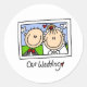 Palo figura novia y novio posan para una imagen con texto que dice "Nuestro Boda". Estas camisetas, tazas, bolsos de té, pegatinas, tarjetas y otros artículos de novias y novios son perfectos y se pueden personalizar a sí mismos antes de hacer un pedido con la sencilla herramienta de personalización.