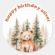 Redonda Nuestro Pegatina de cumpleaños de oso pequeño