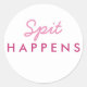 pegatina de Baby Shower "Spit Happens" en rosa y blanco