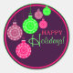 Este pegatina de vacaciones de estilo retro está decorado con un conjunto de adornos en rosa, púrpura y lima. Utilícelo con nuestras invitaciones para fiestas de vacaciones o etiquetas de direcciones para un gran aspecto coordinado!