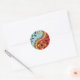 Pegatina redondo con un diseño paisajista diverso en rojo, amarillo y turquesa. Coordenadas con mis diseños de Rangoli.
