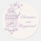 Redonda Pájaros morados y rosas abiertos pegatina de boda
