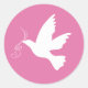Paloma simple de paloma blanca con cintas rosadas pegatina. Ideal para embellecer los favores matrimoniales u otros eventos míticos o temáticos. Parte de la paloma blanca en el juego de papel de boda rosa. Diseñado por Sarah Trett. www.sarahtrett.com para www.mylittleedenweddings.com