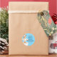 Bonito panadera o cocinera "desde mi cocina", "desde la cocina de" pegatinas de panadería de regalo o etiquetas de paquete para cocinero de panadería, pastelería o pastelería. Lleva una camisa azulada y un pañuelo en la cabeza, mezclando un tazón gigante de masa o masa con una cuchara gigante de madera. Puede CAMBIAR EL COLOR del fondo a través del botón "personalizar".
