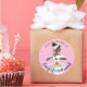 Panadero afroamericano bonito de la mujer con la cuchara de madera gigante que revuelve la pasta o el talud en este "hecho en casa por" la etiqueta de la cocina o "de la cocina" del pegatina para su repostería y pastelería, dulces, e invitaciones hechos en casa.