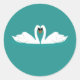 Redonda Pareja de cisnes en pegatina azul