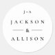Un pegatina boda simple y clásico con nombres de monograma y parejas. Perfecto para uso en sobres de invitación a boda o favores de fiesta.