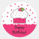 Redonda Pastel rosa Feliz Cumpleaños Pegatina