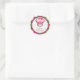 Un pegatina con un ilustracion de un quequito rosado caliente rodeado de un marco a juego. El texto del personalizable dice "Feliz cumpleaños". El fondo es rosa cálido y verde limón. Busque elementos coincidentes, como invitaciones, etiquetas de dirección y franqueo en la categoría "Tienda de Cumpleaños" de la tienda de la escuela rosa.