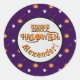 Este espeluznante pegatina de Halloween está decorado con calabazas divertidas, fantasmas, murciélagos y ojos atemorizantes en un oscuro fondo morado que imita la noche de Halloween. El mensaje central es muy gracioso con Halloween escrito usando una calabaza. El nombre del destinatario es personalizable. ¡Perfecto para celebrar la temporada de Halloween!