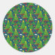 Este es un pegatina festivo adornado con una celebración feliz de Navidades, un moderno y colorido patrón digital