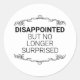 Un pegatina con un diseño que presenta la cita "Decepcionado pero ya no sorprendido" entre dos líneas decorativas. Los componentes del diseño se pueden cambiar, incluyendo el color y el contenido textual y las propiedades de texto. que permiten personalizar.