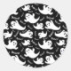 Un pequeño pegatina redondo se muestra en una huella de fantasmas de Halloween. Personalizar este artículo o compra tal cual.