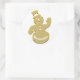 Un muñeco de nieve dorado sonriendo, saludando y vistiendo hasta la cima con su sombrero de punta. Un lindo pegatina para la temporada invernal. Personalice si lo desea.