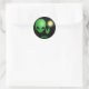 Un pegatina divertido para una fiesta de cumpleaños de ciencia ficción o sólo para divertirse. Presenta un fondo negro con un alien verde. Hay un espacio en la parte inferior para un nombre o mensaje.
