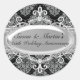 Pegatina de aniversario. Damask elegante plateado y negro. Personaliza con tus propios detalles. Tenga en cuenta: ¡todas las imágenes planas!