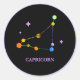 Redonda Pegatina Arcoiris de Capricornio Zodiaco Negro