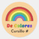 Ilustracion original de un arcoiris y el texto que dice "De Colores". Se proporciona espacio para la personalización - nombre de iglesia o número de cursillo.
