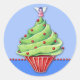 Redonda Pegatina azul del pastel de árbol de Navidad2