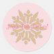Redonda Pegatina Baby Shower de copos de nieve rosa y dora