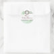 Este moderno pegatina Baby Shower personalizable presenta flores verdes sobre un fondo de polka verde y blanco. Personalizar añadiendo tus detalles en la letra de tu elección!