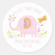 Redonda Pegatina Baby Shower de elefante rosa lindo Chica